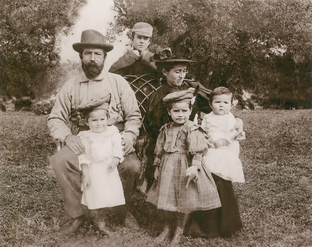 Juan Alvino and Josefa Romero with four of their children, including Alvino (far right) and Virginia (far left), 1899